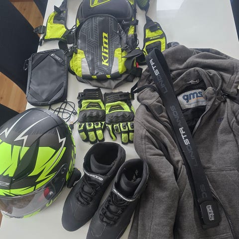 De grønn-gule stripene er fine for nattekjøring sånn at biler ser deg. Den er i størrelse small (55-56) og sitter godt. Den har både et klart helvisir, og et solvisir som tas ned via en bryter.
