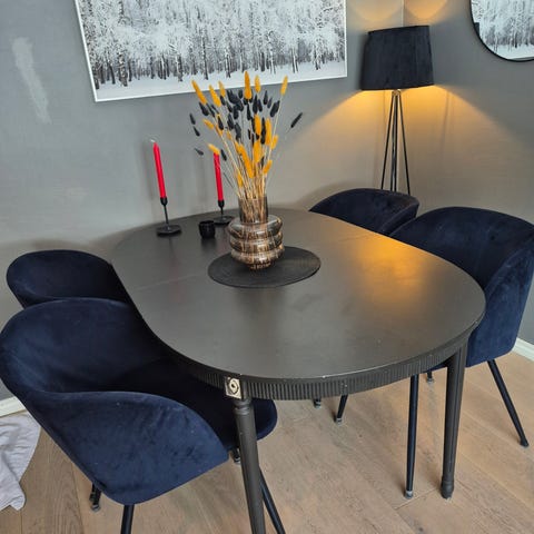 Pent glassbord med 4 velourstoler selges