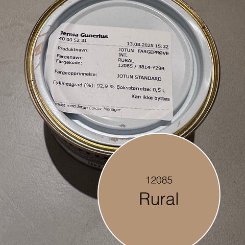 0,5 l boks med fargeprøve fra Jotun i fargen 11175 Adventure. Bare brukt til å male litt testflekker på vegger, så den er ganske ubrukt.
