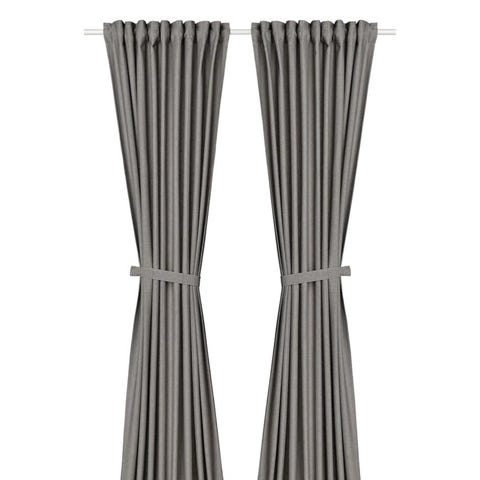 IKEA Lenda gardinsett i grå farge, størrelse 140x250 cm cm. Gardinene er laget av tekstilmateriale og er designet for å henges opp med stropper. Passer for bruk i stue eller soverom. Har to par (altså 4 stk). Selger 1 par (to stk) for 300