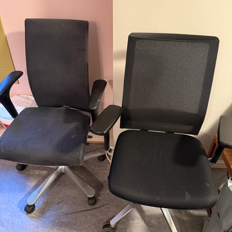 Pent brukt kontorstol. Har ett lite merke på høyre arm.