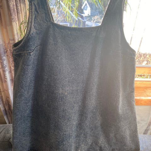 Monki sexy kjole i størrelse XL, laget av grå denim. Kjolen har smale stropper og glidelås foran.