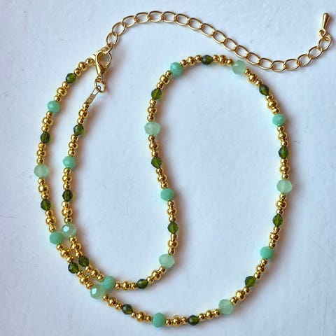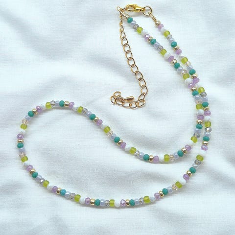 Søkeord: halskjede, rocailles, rocaillesperler, seed beads, glassperler, smykkesett, perler, perlekjede
