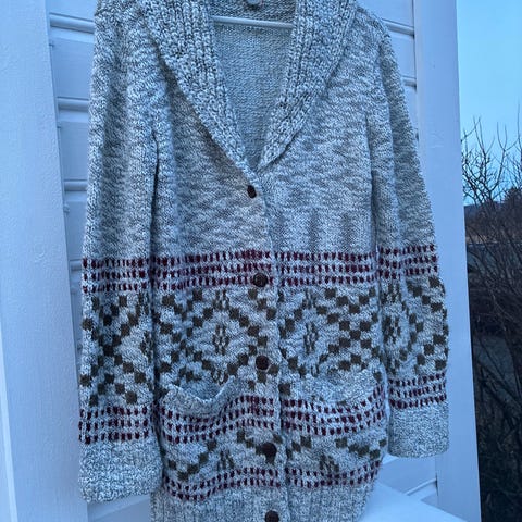 Gina Tricot ulljakke i flerfarget design, størrelse 68, beregnet for jente. Laget av ullmateriale som gir varme og komfort., selges rimelig!