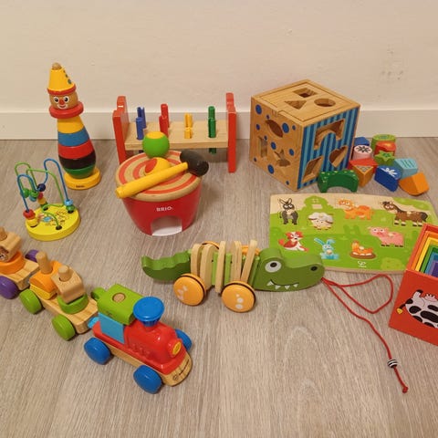 Lekene er fra merkene Brio, Sebra, Fisher-Price og andre.