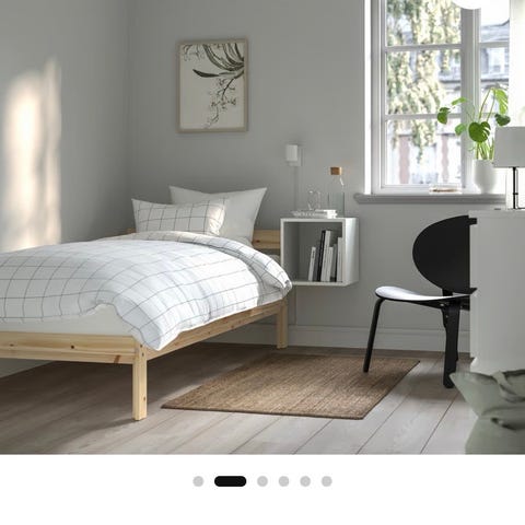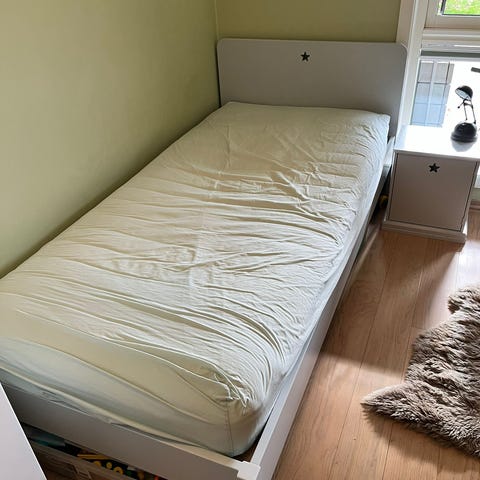 IKEA seng i hvit farge. Enkel og funksjonell design egnet for enkeltrom eller gjesterom.