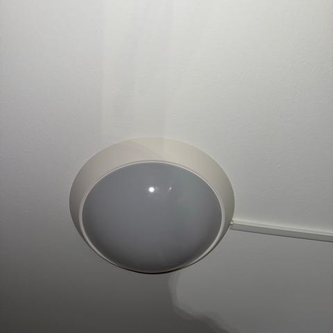 Selger denne eldre taklampen i kongleform. Den er hvit/offwhite og i en form for plast. Ser litt falmet ut noen steder, eller en slags misfarging i innerste laget, muligens etter for sterk varme, jeg vet ikke. Det er ikke veldig synlig på avstand og dekkes av kongle leddene, men på samme tid nok til å nevne her. Kan bytte pære for bedre lys. Muligens vintage IKEA.
