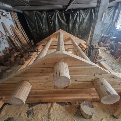 43 m2 , stue med kjøkkenkrok, 2 soverom, bad , hems, laftekassen i laminert tømmer, dører og vinduer, isolasjon, yttertak i aluminium, alt av øvrige trematerialer klar for montering, tilbud nå til kun kr595.000. Hjelp til montering er mulig