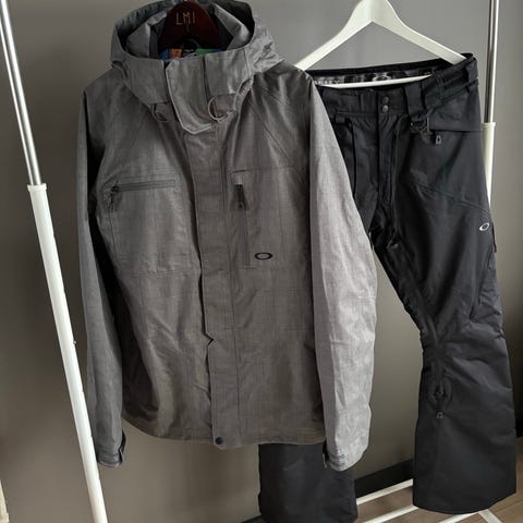 Selger Oakley ski-/snowboard sett snowboarddress til herre, størrelse S. Jakke og bukse, med Gore-tex. Fine farger (dårlige bilder ;) Farge er veldig mørt marineblå + lyseblå, intens i farge (som på bildene fra butikken).