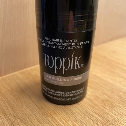 Toppik Hair Building Fibers hårfibre i medium blond farge. Produktet brukes for å gi tykkere utseende hår ved å feste små fibre til eksisterende hår. Egnet for bruk ved hårtynning og hårtap.