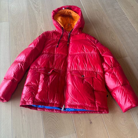 Pent og lite brukt dunjakke fra After Label i en veldig fin blåfarge. Str. L, men passer også M. Med avtagbare stropper på innsiden som gjør at du kan ha jakken som en sekk på ryggen.