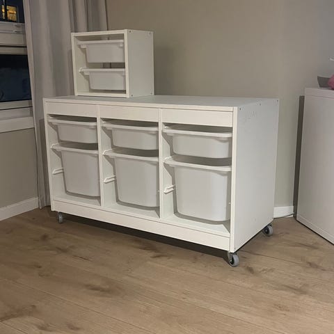 IKEA FLISAT lekebord / barnebord med TROFAST oppbevarings-esker under lokket
