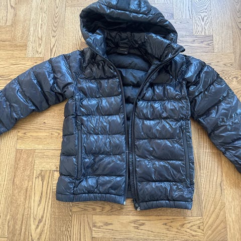 Peak Performance dunjakke i mørk for barn i størrelse 150. Jakken er unisex og laget med dun som isolasjonsmateriale.