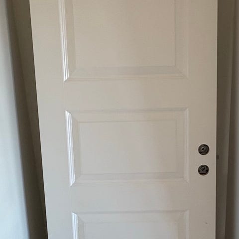 2 stk hvite innerdører med tre rektangulære paneler. Pris er per dør.