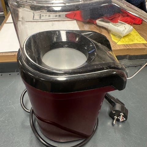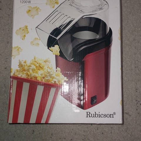 Ubrukt Rubicson popcornmaskin. Trenger ikke olje, popcornet popper rett i bollen. Perfekt for filmkveld eller hjemmekino!