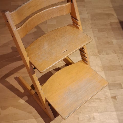 Godt brukt tripp trapp. trenger en liten dæsj tremil i overgang ben og stol, eller hel. Sendes ikke