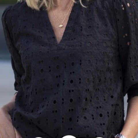 Helt ny med ta på. Nydelig svart bluse i 100% bomull. Selges pga feil str. kan evt. bytte ny str s. Blondedetaljer i front, liten puff på ermene. Glidelås i ryggen. Ny pris 1800.