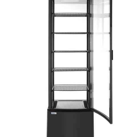 Logik Side-by-side kjøleskap med stålfinish. Kjøleskapet har en stor kapasitet med to separate dører for kjøling og frysing.