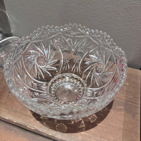 Skål i krystall med mønster. Egnet for servering eller dekorative.