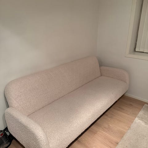 Sort sofa til salgs! Den har en liten strek av hvit maling (bilde 3) som kommer fra forrige eier:)
