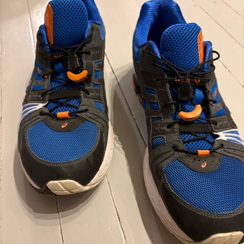 Salomon Ultra Glide 2 Wide løpesko i størrelse 46, med bred passform. Skoene har en blå farge og er designet for løping. Materialet og konstruksjonen er tilpasset for å gi komfort og støtte under løpeaktiviteter.