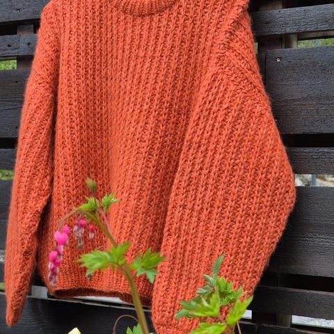 Håndstrikket genser i patenstrikk selges da jeg har for mange gensere, denne er kun brukt et par ganger så fremstår som ny, den måler 106cm i overvidde, 62cm i hel lengde og 48cm i ermlengde.