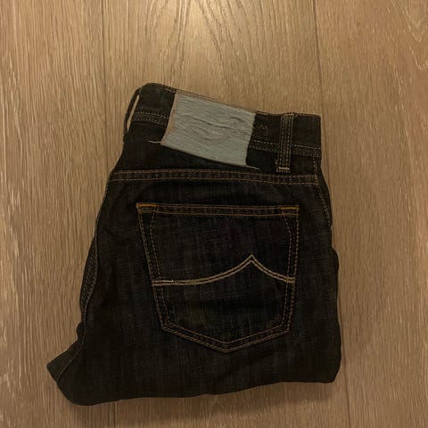 Jacob Cohën jeans i blå farge, Størrelse W28 og herremodell i størrelse S.