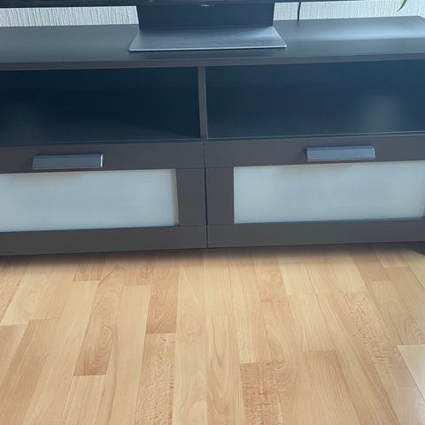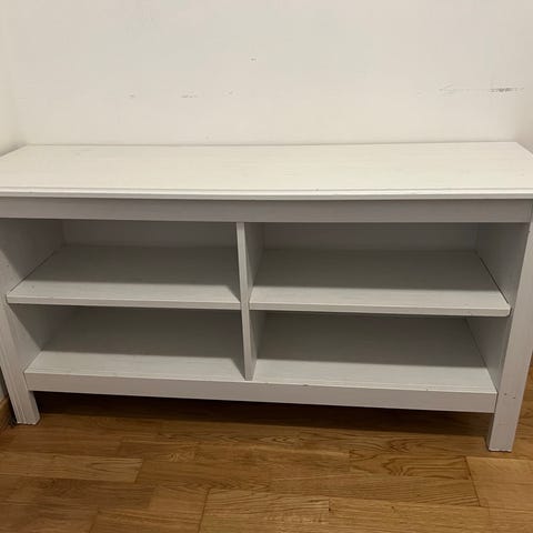 Fin TV-benk fra IKEA. Har nylig satt på nye, høye føtter for å få den opp fra gulvet.