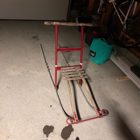 Den er litt ødelagt på setet, en hund syntes det var en veldig god spark.