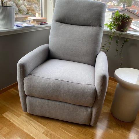 Reclinerstoler fra Jysk selges. De er meget fine og fint brukt. De selges fortsatt i butikk og heter Vonsild. Lys grå, nypris 5000pr stk. De selges samlet.