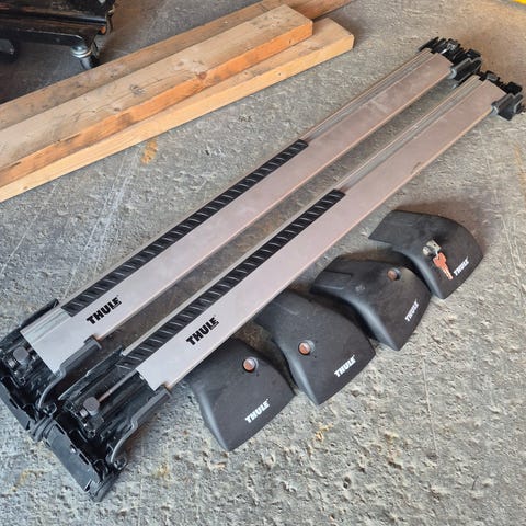 Thule WingBar Edge takstativ i aluminium og svart farge. Passer til BMW X5 5-dørs SUV 2007-2013. Trolig andre biler med flush rails også. Selges pga ny bil.