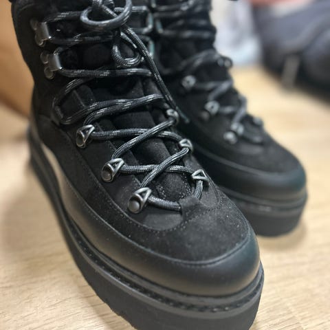 Den semskede overflaten er laget av sertifisert, premium italiensk skinn, og innsiden er fôret med supermyk lamfellfôr. Solid gummisåle som gir godt grep.
