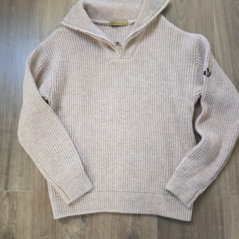 Mackenzie genser laget av 100% ull i grå farge. Genseren har en glidelås ved halsen og er designet for komfort og varme.