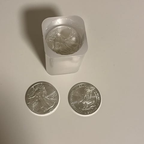 i skrinet er det 3 flotte gullmynter, preget i 90% gull: