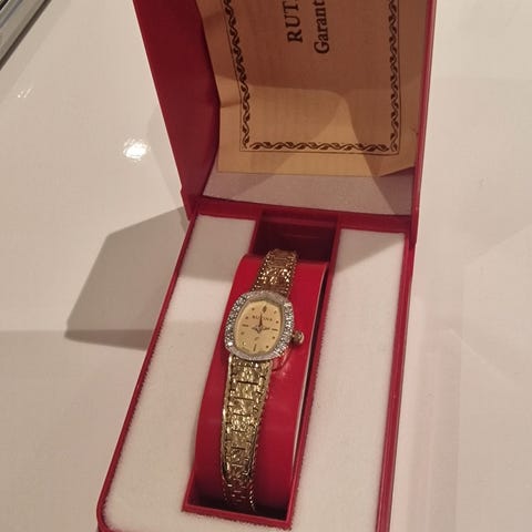 Klokken er meget pen men jeg bruker ikke klokker. Dette er en 25 års jubileums klokke. Kjøper må bytte batteri da den har ligget på lager i lang tid. Gi meg et godt tilbud og jeg slår til. Bedre at noen bruker den enn at den bare ligger lagret.