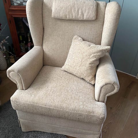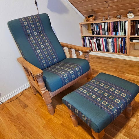 Man kan sitte i den, men den har ødelagt fjær i sete