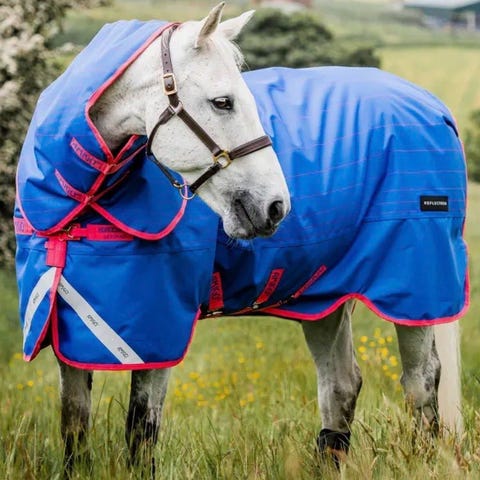 Så og si ubrukt Horseware Amigo Reflectech 250g str 125, avtagbar hals. Ingen skader, kun brukt et par ganger, selges da det ikke passet optimalt. Nypris 2700,-.
