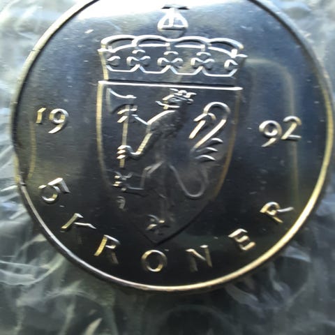 Norges 5 Kroner Minnemynt 1945-1995. Kan hentes i Drammen område!
