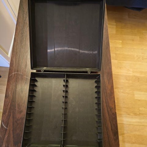 Selger 2 stk Musikk- kassett-kofferter, til 12 kassetter pr koffert. Selges uten kassetter.