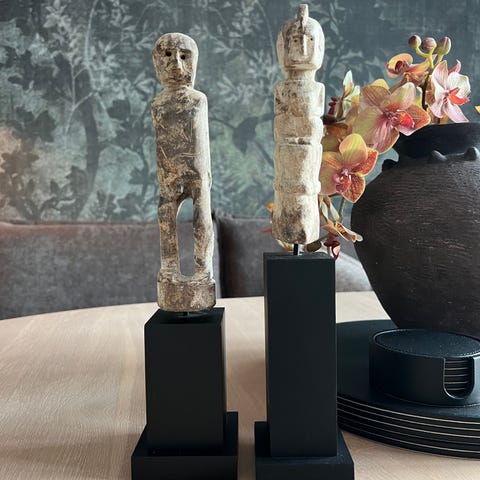 Flott dekorativ steinskulptur på stativ selges