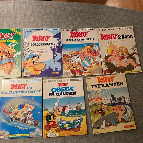 Fin samling Asterix blader-ulike utgaver/alder ol.Overgående fin stand.Men noen merker.bud