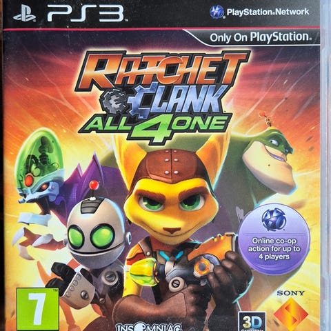 Ratchet & Clank Playstation 3 spill. Inneholder eventyr og actionelementer til Playstation 3 konsollen. Passer for spillere fra 7 år og oppover.