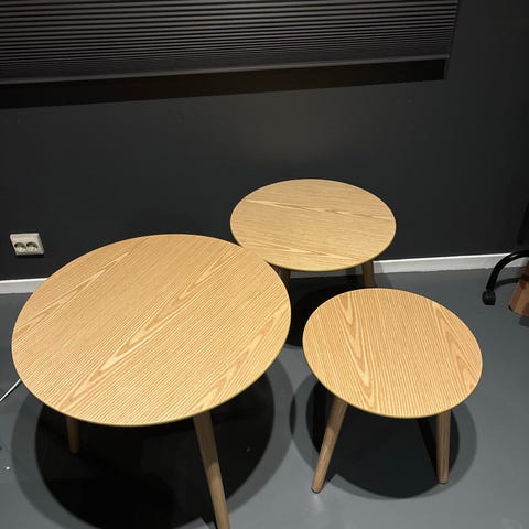 Jysk Spodsbjerg stuebord/sofabord/salongbord selges. Kjøpt i oktober. Så god som ny. Ingen merker eller riper. Diameter 67 cm og høyde 42 cm. Varm eikefarge. Ny pris: 899 kr