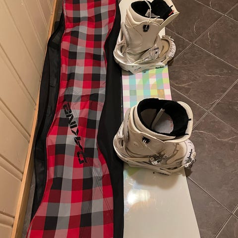 Burton Custom Smalls snowboard med en lengde på 135cm. Bindinger fra K2 passer til sko fra 36-40.