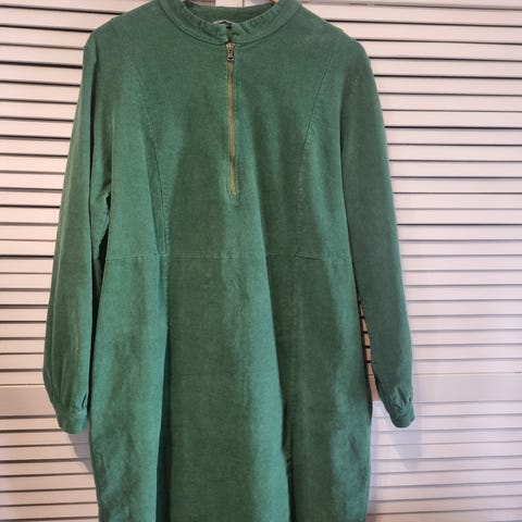 Kjempefin og behagelig kjole. Str L. Et par små hull som vist på det ene bildet. Kan lett syes eller synes ikke noe særlig. Selges derfor billig