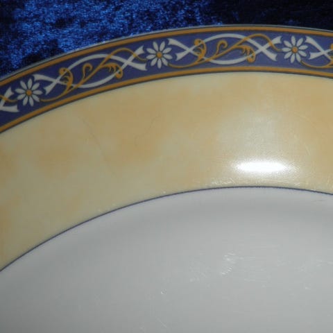 Et par av tallerknene har mindre skår. Kan sende bilde dersom ønskelig.
