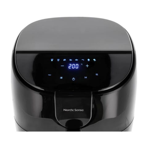 Airfryer på 6,5 liter, 1650 watt, med vindu i skuffen, slik at du kan følge med på tilberedningsprosessen. Elleve ferdige programmer, temperaturjustering mellom 40 og 200 °C, tidsur og varmholdings-, forsinkelses- og ristefunksjon. Denne airfryeren har også et digitalt display, automatisk avstenging samt overopphetingsvern. Det praktiske non-stick-belegget er enkelt å rengjøre. Du kan følge med på tilberedningsprosessen gjennom vinduet. Kan brukes til både kjøtt, fisk, grønnsaker og snacks, og sparer opptil 80 % fett sammenlignet med vanlig frityrsteking