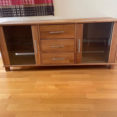 Tv benk - bredde 107 cm, dybde 57 cm, høyde 53. Må hentes