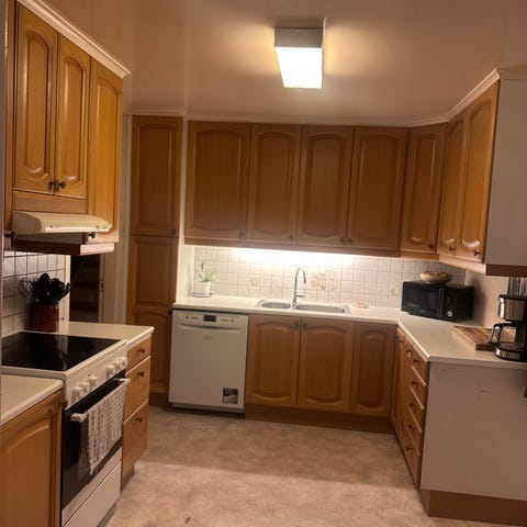Kjøkkenskrog er fra 1995, dører og skuffer (kjøkkenfornying) fra 2015. Soft close på alle skuffer.