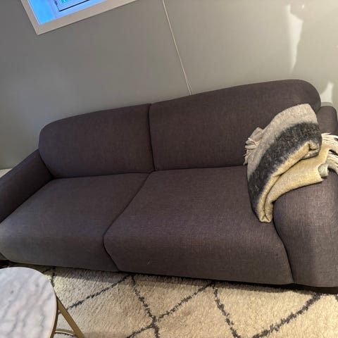 Gir bort en sovesofa fra Skeidar. Vi hadde et uhell med en ovn som sto for nær derav en skade i siden på sofaen. Se bilder!